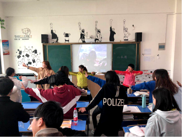 在整个教学过程中,陈悦老师讲授了传承传统文化的深远意义,邀请体育老师介绍了八段锦的来历及蕴含的意义,并带领学生共同体验,密切的与思政课堂相融合。学生们主动参与,认真学习,积极讨论,课堂氛围十分活跃。
