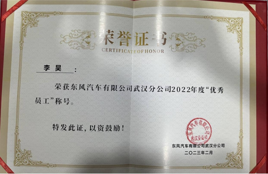 东风汽车有限公司武汉分公司2022年度优秀员工