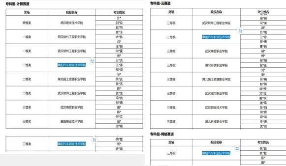襄阳汽车职业技术学院计算赛道、云赛道、网络赛道的代表队分别由徐强、张毅夫、胡红艳等教师指导,12名来自大数据技术和信息安全专业的学生组成。自备赛以来,指导教师悉心指导,各参赛选手刻苦训练,反复打磨知识和技术要点,充分展现了参赛师生立足实践、以赛促教、以赛促学、以赛促发展的精神风貌。大数据技术专业万福杰、王江涛、邹俊贤获计算赛道二等奖;胡容慧、张仪、许晓涵获计算赛道三等奖;罗炯惠、吕建旭、卫帅奇获云赛道三等奖;张靓颖、张秋粒、陈晴获网络赛道三等奖。
