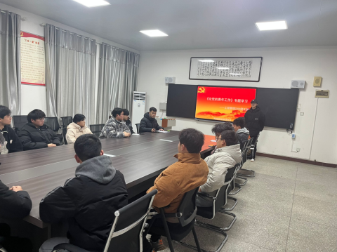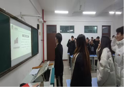 会议最后,团支书包柱鼎带领全体参会人员面向团旗,重温入团誓词,在声声誓词下本次示范性组织生活会顺利结束。