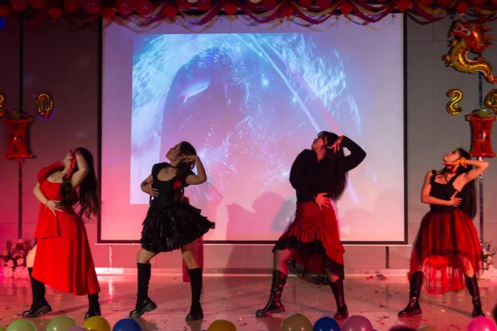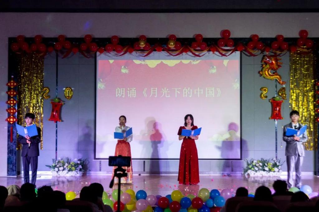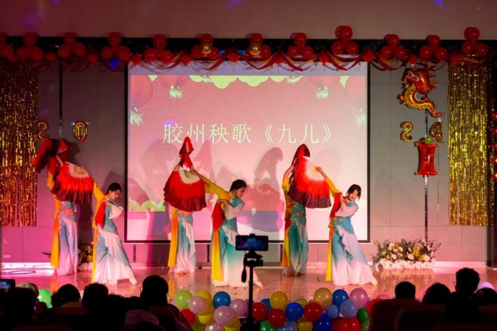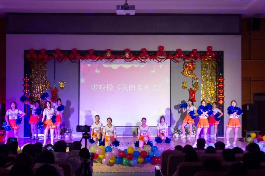 晚会拉开帷幕,一曲《天外来物》振奋激昂,仿佛龙腾虎跃般,为整个晚会注入了勃勃生机。紧接着,深情的朗诵声声入耳,《月光下的中国》表达了青年学子对祖国的热爱之情。胶州秧歌《九儿》则将大家带入了传统乡土文化,展现了浓厚的地方风情。啦啦操《我的未来式》展现了学子们青春活力、积极向上的精神风貌,勾画出一个充满梦想的未来。