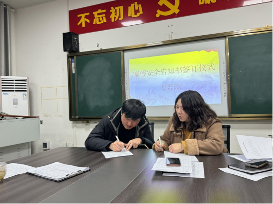 随后,副院长陈露与各班主任老师、班主任与各班学生全覆盖签订《寒假学生安全告知书》,它是一份约束,更是一份关爱。让学生深入了解了寒假期间需要注意的安全事项,提高学生的安全意识和自我保护能力,为渡过一个祥和、安宁的寒假、新春佳节提供了有力保障。