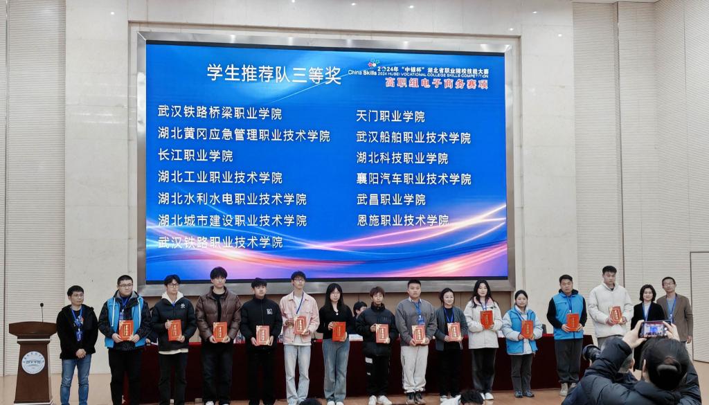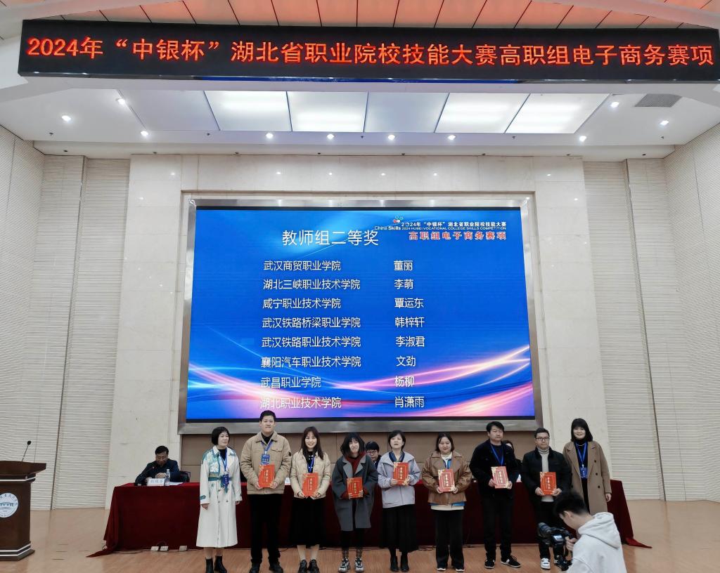 3月10日,2024年“中银杯”湖北省职业院校技能大赛高职组电子商务赛项在襄阳职业技术学院落下帷幕,来自全省43所职业院校的340名学生、79名教师代表围绕电商技能同台竞技。我校电子商务专业许喆欣、李籽怡、胡劲羽、王如鹏组成的代表队获得推荐队三等奖;陈前进、包心怡、郑鑫悦、刘佳怡组成的代表队获得抽测队二等奖。教师代表文劲获得教师组二等奖!