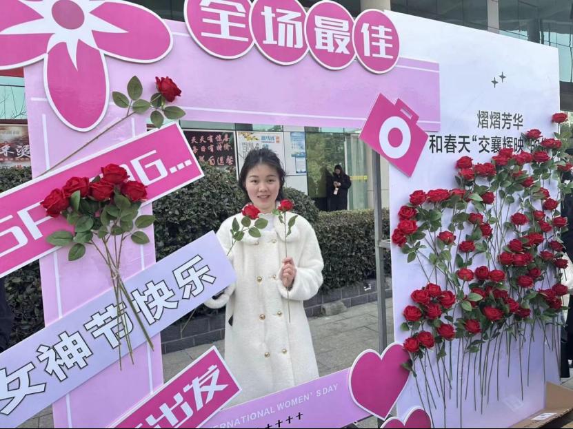 除了贴祝福语之外,现场还设置了鲜花赠送环节。志愿者们手捧鲜花,为每一位到场的女性送上最诚挚的祝福。收到鲜花的“女神”们脸上露出了惊喜和感动的表情,她们纷纷表示这是她们收到的最特别的节日礼物。
