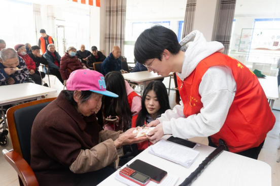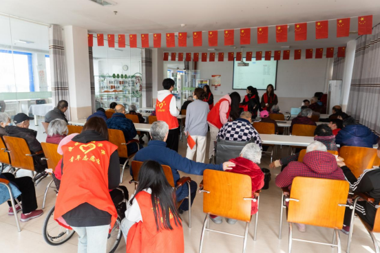 在护工的带领下,志愿者们前往老人们所在的活动室,参加福利院的生日会,志愿者们和老人们一起切蛋糕、共唱生日歌并为老人们送上祝福。志愿者们的陪伴和关怀,给老人们带去了温暖和感动。
