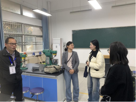 本次调研旨在了解湖北国土资源职业学院在实训建设规划和理实结合教育方面的先进做法,为我院实训建设和理实结合的教学方式提供新的思路和方向。湖北国土资源职业学院学管负责人丁小伟、工程造价专业专人教师黄琴对建工学院进行了热情接待,并就专业发展、产教融合、校企合作等进行了多方面交流。工程造价专任教师黄琴带领大家参观实训场地与实训设备,并详细介绍了该校实训建设情况,包括广联达招投标沙盘、压力试验机、水泥胶砂搅拌机等设施。