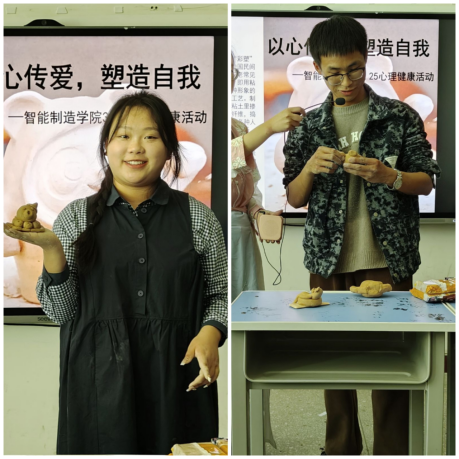 作品完成后,同学上台展示自己的作品,介绍作品创作灵感。通过这次活动学生们不仅了解到泥塑这项古老的传统文化艺术形式,也通过塑造生动形象,反映内心世界,促进身心和谐。