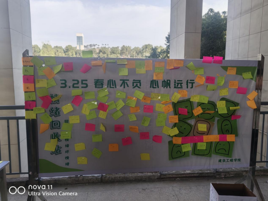 活动第一阶段,3月18日-3月20日,“情绪回收站”。邀请建筑工程学院的同学们在情绪回收站写上自己的旧情绪和坏情绪贴在展板或者投入回收箱中。让同学们在活动中学会释放自己的就情绪和坏情绪。