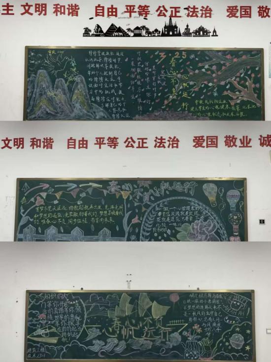 活动第二阶段,3月20日—3月25日,“黑板报”,各班以“春心不负,心帆远行”为主题,出一期黑板报。让同学们共同学习心理健康知识。