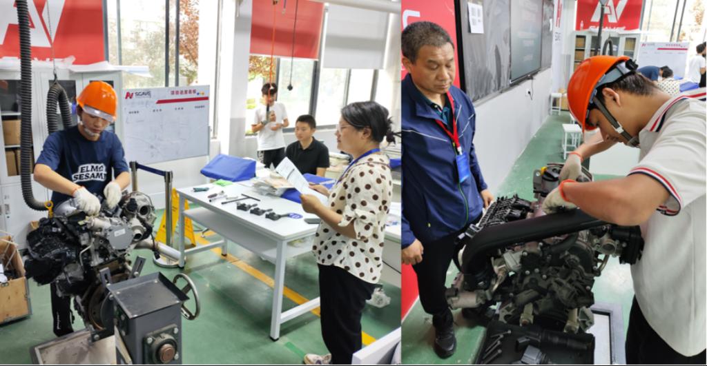 4月份经过与SGAVE项目秘书处多次沟通,确定了中期考核的方案、形式、大纲、具体时间。主考官由SGAVE项目秘书处随机指派,考前由主考官联系相应的中期考核院校进行考前准备工作检查。考核大纲由SGAVE项目秘书处统一发布,试题由参加考核院校随机抽取,试题分为理论和实践两个模块。理论模块主要考核前三个学期所学的知识点,在90分钟内完成纸质试卷答题;实践模块中,每名考生要在90分钟完成两个实践任务,包含与用户沟通问题、分析故障原因、制定计划、执行检修作业、验证检修结果、完工交付等内容。理论考试成绩直接取卷面分数,占中期考核总成绩的50%;实践考核成绩由工位考官现场根据学生表现进行评分,占中期考核总成绩的50%。