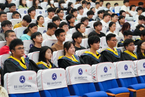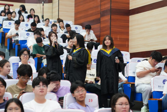 典礼上,三位优秀的毕业生依次上台发言,他们展示了个人的风采和成就,分享了实习就业中的个人经历,为毕业生和在校生在以后实习就业中提供了宝贵经验。