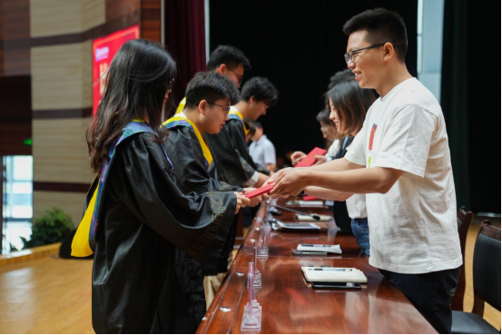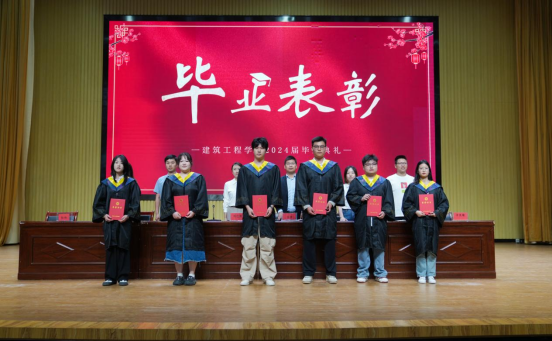 典礼上,学院领导为2024届优秀毕业生、实习生代表颁发荣誉证书,随后何院长为毕业生代表拨穗、颁发毕业证,送上美好的祝愿。