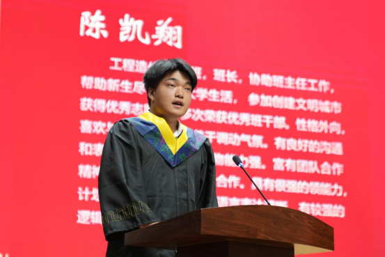 建筑工程技术2102班张满意作为优秀毕业生发言