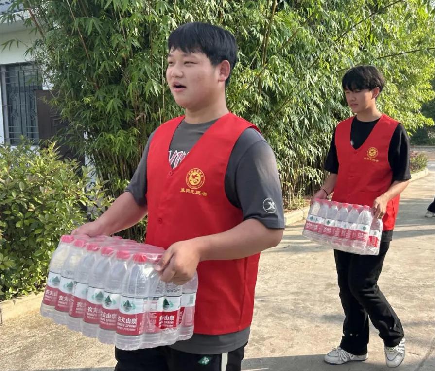 枇杷黄后杨梅紫,正是农家小满天。一大早,交管学院的志愿者们就来到尹集乡,在老师的指挥下,开始布置会场。为保证道路通畅,他们在道路上充当了“小交警”的角色,帮助到场的车辆和观赏人员指引方向。初夏里也夹杂着一丝燥热,志愿者们在活动前将所有表演者的服装准备到位,并搬来一箱箱水为每一位观众和工作人员解暑散热。