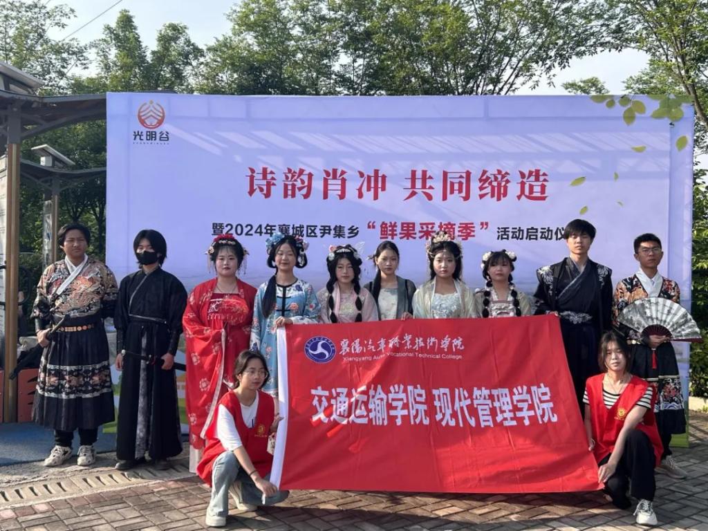 兴华夏之美,传华夏之礼。为落实襄阳市民政局“光明谷”——“文化引领”助力乡村振兴社会服务项目,进一步助力乡村振兴,5月18日上午,襄阳汽车职业技术学院交管学院华忆阁汉服社受邀参加由民盟襄阳市委、中共襄城区委统战部、尹集乡人民政府主办的“诗韵肖冲,共同缔造”暨2024年襄城区尹集乡“鲜果采摘季”活动启动仪式。