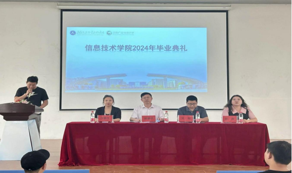 栀子花开,骊歌响起。5月21日下午,信息技术学院在一号楼三楼学术报告厅隆重举行2024年毕业典礼。信息技术学院院长胡德洪,党总支负责人吴超,副院长陈露、李静雯,各研究室主任、毕业班班主任、辅导员及250名2024届毕业生代表共同见证了这一重要时刻。毕业典礼由学生科科长周楚阳主持。