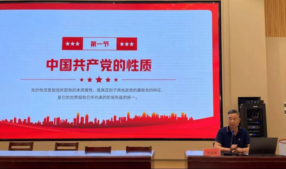在随后的第一堂党课中,学院院长张显辉以“党旗引领青春之路”为主题,结合第一章《铭记性质宗旨,坚定理想信念》内容,从中国共产党的性质、根本宗旨、最高理想三个方面展开讲述,让同学们对党的发展历程有了更加深刻的了解与认识。