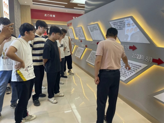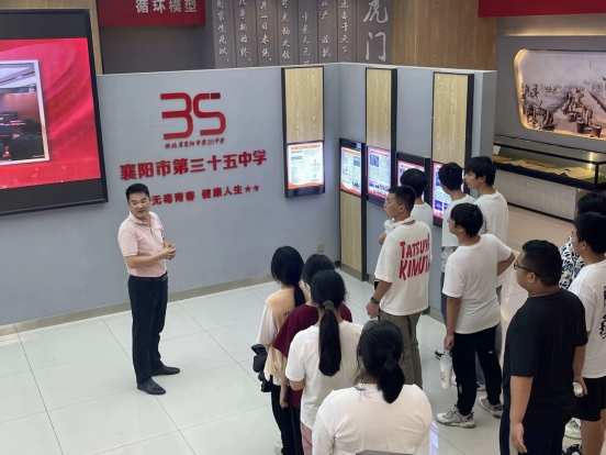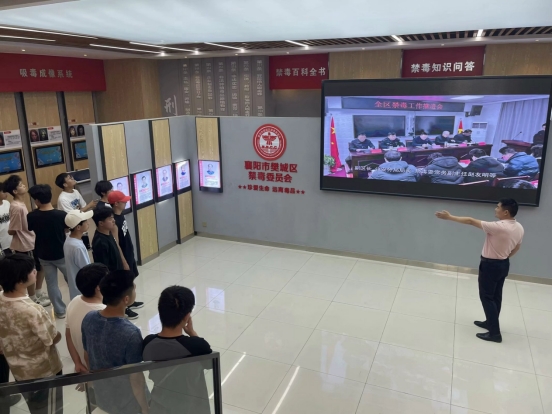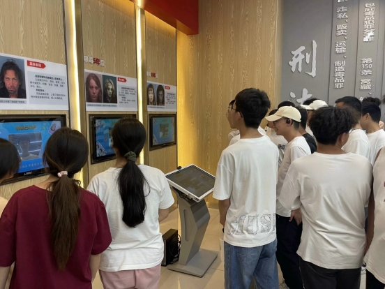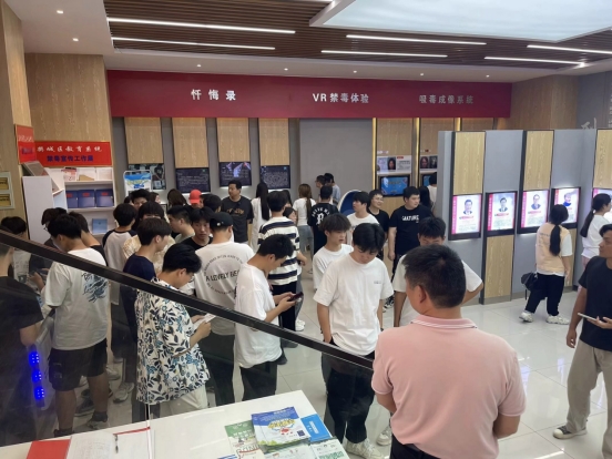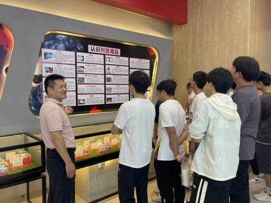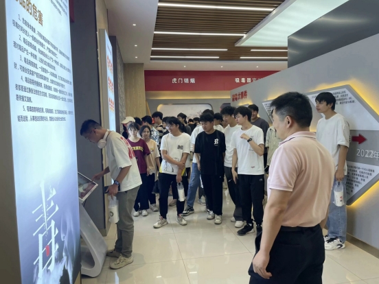 在三十五中副校长王奇君的带领下,同学们依次参观了禁毒教育基地的毒情形势区、毒品危害区、涉毒场景“VR”模拟区、互动体验区、毒品预防教育区等展区,以及展区外各宣传栏板块。