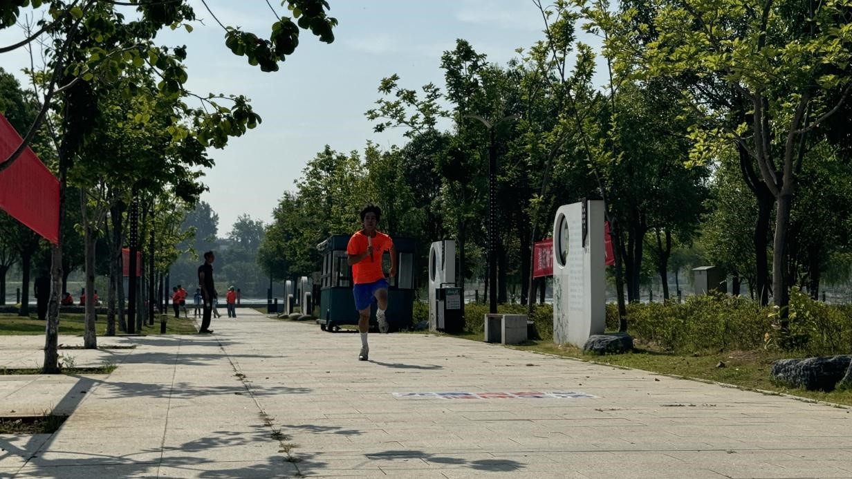 在接力跑环节中,同学们身穿橘红色的上衣,像一团团熊熊燃烧的火焰,仿佛让我们看到了一百多年前林则徐虎门销烟的盛况,他们手中交接的接力棒,是在传递着“珍爱生命,远离毒品”的正能量。如今,有多少禁毒英雄因为毒品而牺牲,有多少人因为染上毒品而失去了美好的生活,导致家破人亡。毒品不仅害人,还是危害社会安全稳定的一大毒瘤。