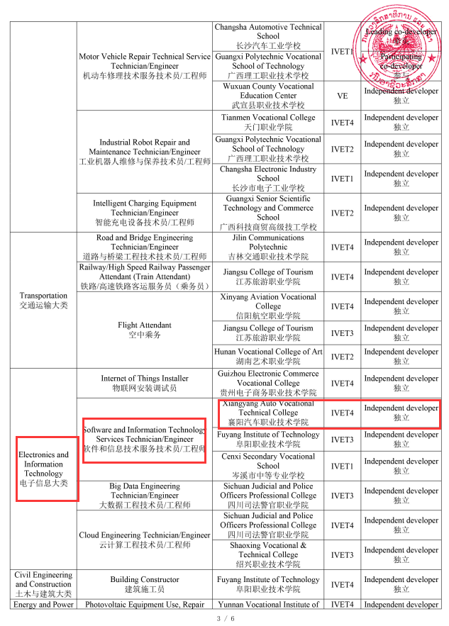 6月22日,老挝人民民主共和国教育体育部技术与职业教育司发布《关于公布“老挝国家职业标准共建互认项目(第二批)及应用推广项目”立项建设单位的通知》,信息技术学院成功获批电子信息大类“软件和信息技术服务技术员/工程师(IVET4)”项目,标志着国际交流合作和高水平专业群建设又迈出关键一步。