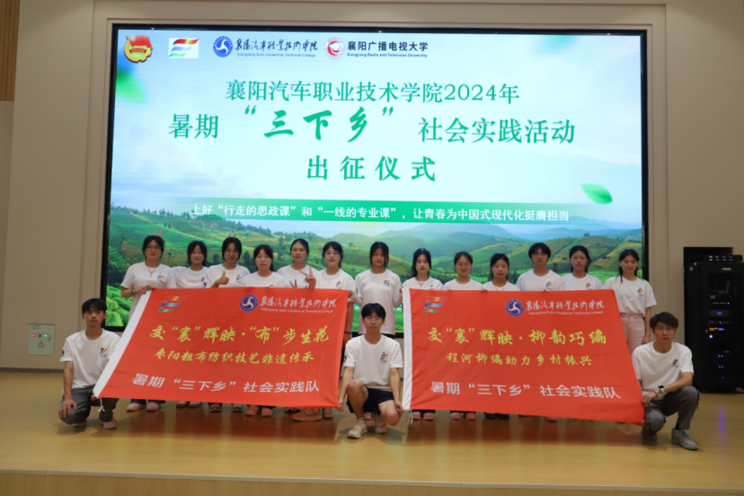 为深入学习贯彻习近平新时代中国特色社会主义思想和党的二十大精神,学习宣传贯彻习近平文化思想、习近平总书记五四青年节对全国广大青年寄语精神,引导和帮助青年学生在社会课堂中受教育、长才干、作贡献,争做有理想、敢担当、能吃苦、肯奋斗的新时代好青年,7月2日,襄阳汽车职业技术学院举行以“青春为中国式现代化挺膺担当”为主题的2024年暑期“三下乡”社会实践活动出征仪式。