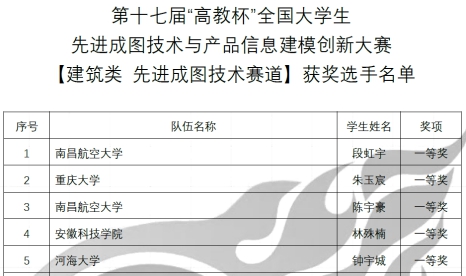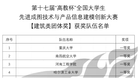 8月4日,第十七届“高教杯”全国大学生先进成图技术与产品信息建模创新大赛总决赛公布结果,襄阳汽车职业技术学院学子再创佳绩,荣获建筑类赛道团体二等奖2项,个人全能赛一等奖1项、二等奖1项、三等奖5项。