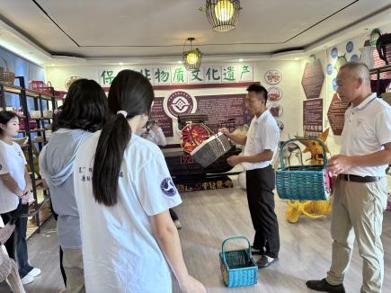 (图为队员们在听王主席讲解程河柳编的发展历程)