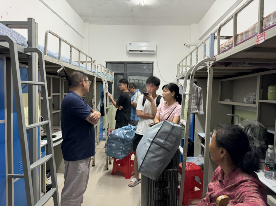 为深入了解新生思想动态和入校状况,加强师生交流,引导新生尽快适应新生活新环境,切实解决学生所遇到的实际问题。9月8日晚,学校党委委员、副校长傅强,信息技术学院院长胡德洪、党总支部负责人吴超、副院长陈露,全体2024级新生辅导员、班主任深入走访新生宿舍,与新生面对面、零距离交流,送去暖心的关怀和问候。