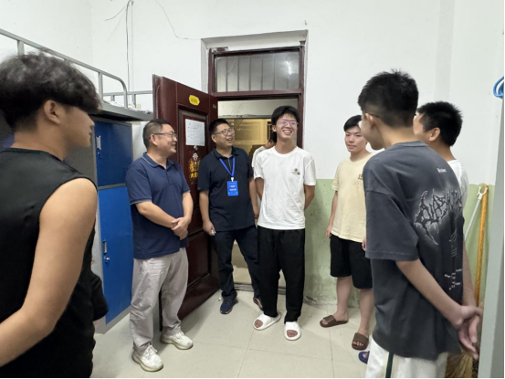 班主任们带着满满的关怀与期望,走进了新生宿舍楼。每到一处,校领导都仔细查看宿舍环境,询问学生们对住宿条件的满意度,以及初入校园的适应情况。他们亲切地与新生交谈,倾听新生们的心声,从学习规划到生活琐事,无一不体现对新生的细致关怀和殷切期望。