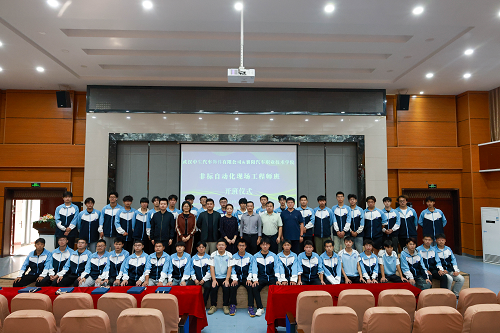 10月15日下午,我院机电一体化技术专业与武汉中生汽车饰件有限公司合办的“非标自动化现场工程师班”开班仪式在一号楼学术报告厅举行。武汉中生汽车饰件有限公司人力总监王涛,支持单位武汉咚咚英才教育科技有限公司总经理张涛,智能制造学院院长孙莉、党总支书记张军建出席本次开班仪式,机电2023级(非标自动化现场工程师班)全体学生参加本次开班仪式,开班仪式由智能制造学院副院长马春亮主持。