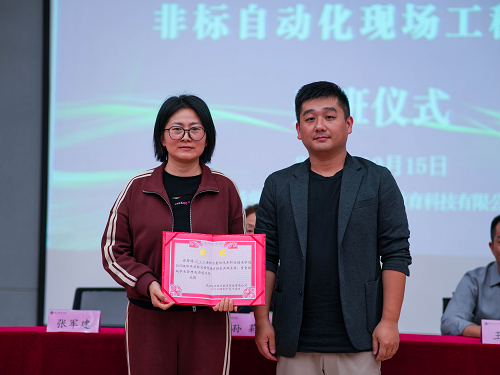 孙莉感谢了企业对学校教育的大力支持。强调了成立“非标自动化现场工程师班”的意义,对校企双师团队和学生提出要求并给予鼓励,希望同学们树立正确的学习态度,积极主动地参与课堂教学和实践活动中。最后预祝同学们在接下来的学习中取得优异的成绩,为未来职业发展打下坚实的基础。