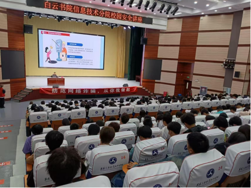为切实提升学生识骗防骗意识和应对处置能力,持续做好反诈宣传工作,预防和减少校园电信网络诈骗案件发生。10月17日下午,白云书院信息分院联合尹集派出所开展了“防范电信诈骗”专题讲座。信息技术学院各班班级代表参与此次活动。
