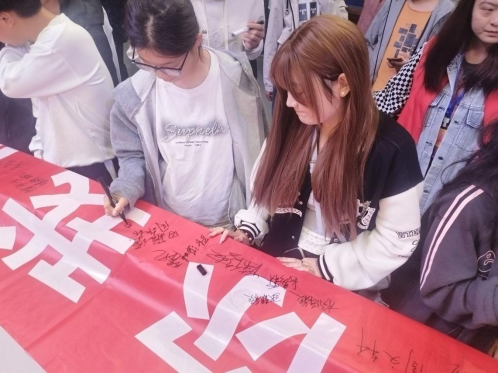 活动现场反响热烈,同学们积极参与其中。随后同学们纷纷参与反诈承诺签名活动,在反诈防骗横幅上签下自己的名字。