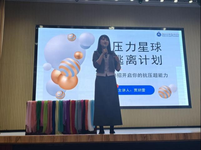 培训中,贾老师以“压力星球逃离计划——三招开启你的抗压超能力”为题,运用幽默生动的语言、引人入胜的案例,快速调动大家的参与热情,从压力识别、压力是如何形成的、压力应对、自我调节心理状态方面,进行了深入浅出的讲解。