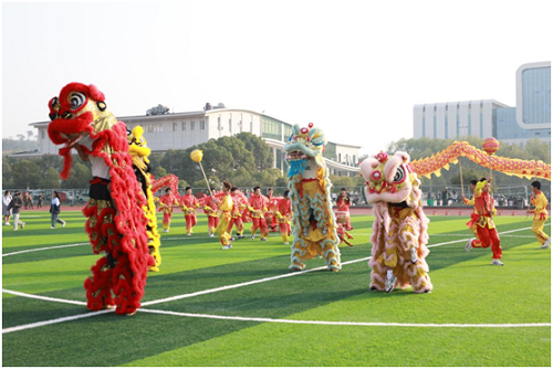 阳光洒满运动场,运动会开幕式在热烈的氛围中拉开帷幕。团体操活力飞扬,队员们手中的花球随着动感的节奏舞动,绽放出青春的光彩。武术表演刚劲有力,尽显武者风范。舞龙舞狮热闹非凡,巨龙盘旋、雄狮跳跃,将现场气氛推向高潮。