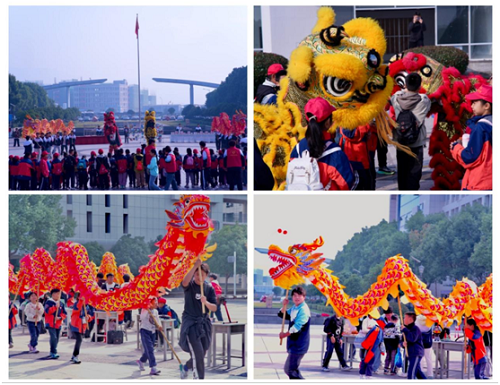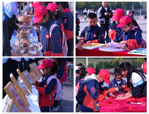 随后,小记者们又来到了红旗广场社团展示区。伴随着欢快的锣鼓声,龙狮社的表演闪亮登场,小记者们通过亲身体验舞龙舞狮道具的操作,更加真切地感受到了传统文化所蕴含的深厚底蕴与无限活力。在传统文化艺术展区,陈列着画作、漆扇和剪纸等传统文化作品,志愿者们细心地讲解着我国传统文化作品的内涵,并在剪纸社团成员的带领下,小记者们纷纷拿起剪刀,亲身体验剪纸艺术的魅力。