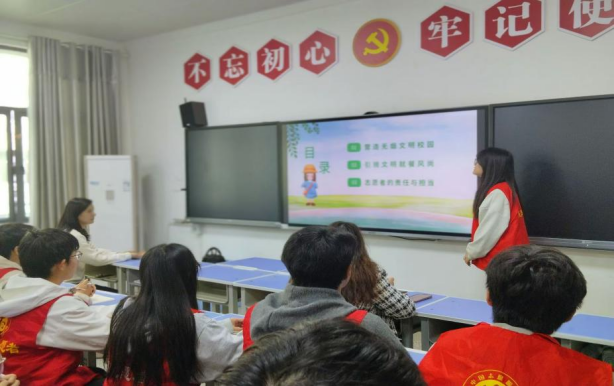 班会课上,师生共话文明,通过播放精心制作的文明礼仪教育视频,生动形象地展示了文明行为与不文明现象的鲜明对比,从课堂纪律到校园环境,从同学交往到尊师重道,深入剖析身边的文明点滴与不足。有的班级还创新地开展了文明素养知识问答竞赛,以小组竞赛的形式激发同学们对文明知识的探索热情。用学生喜闻乐见的方式,教导学生要扣好人生第一粒扣子,文明习惯就在我们身边,就在日常行为之中。为学生成长培根铸魂、启智润心。