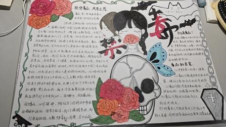 接着,空乘2405班的同学们充分发挥自己的才艺特长,创作了一系列禁毒手抄报。这些手抄报内容丰富、形式多样,有的用醒目的图片展示毒品的危害,有的以简洁明了的文字阐述禁毒法律法规,有的则通过漫画的形式讲述禁毒故事。一幅幅精美的手抄报在校园内展示,吸引了众多师生驻足观看,成为了校园里一道独特的禁毒宣传风景线。