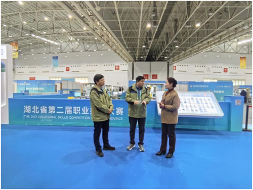 同期举行的第二届职业技能大赛期间,孙莉到达活动现场与襄阳市职鉴中心科长张国喜、主任刘辉进行了深入交流与会面。孙莉表示,此次参赛与参展对于学院意义非凡。在接下来几年,智能制造学院还将继续努力,多参赛、参大展,持续提升学校在智能制造领域的影响力与知名度。