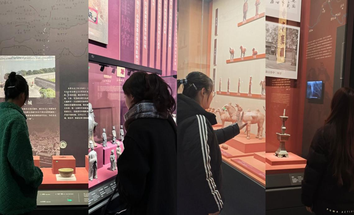 同学们满怀热情地步入襄阳博物馆,在讲解员的带领下,依次参观了各个展厅。从远古时期的襄阳文明起源,到三国时期的风云变幻,再到近现代的发展变迁,丰富多样的文物展品如同一部部生动的史书,吸引着大家驻足凝视、认真聆听讲解。珍贵的青铜器、精美的陶瓷、古朴的书画等,无一不展示着襄阳地区深厚的文化积淀和独特的艺术魅力,面对琳琅满目的展品,孙浈育老师引导同学们思考如何运用电商手段保护与传承这些珍贵的民俗文化。