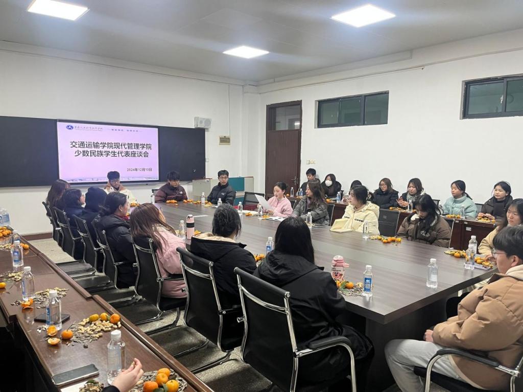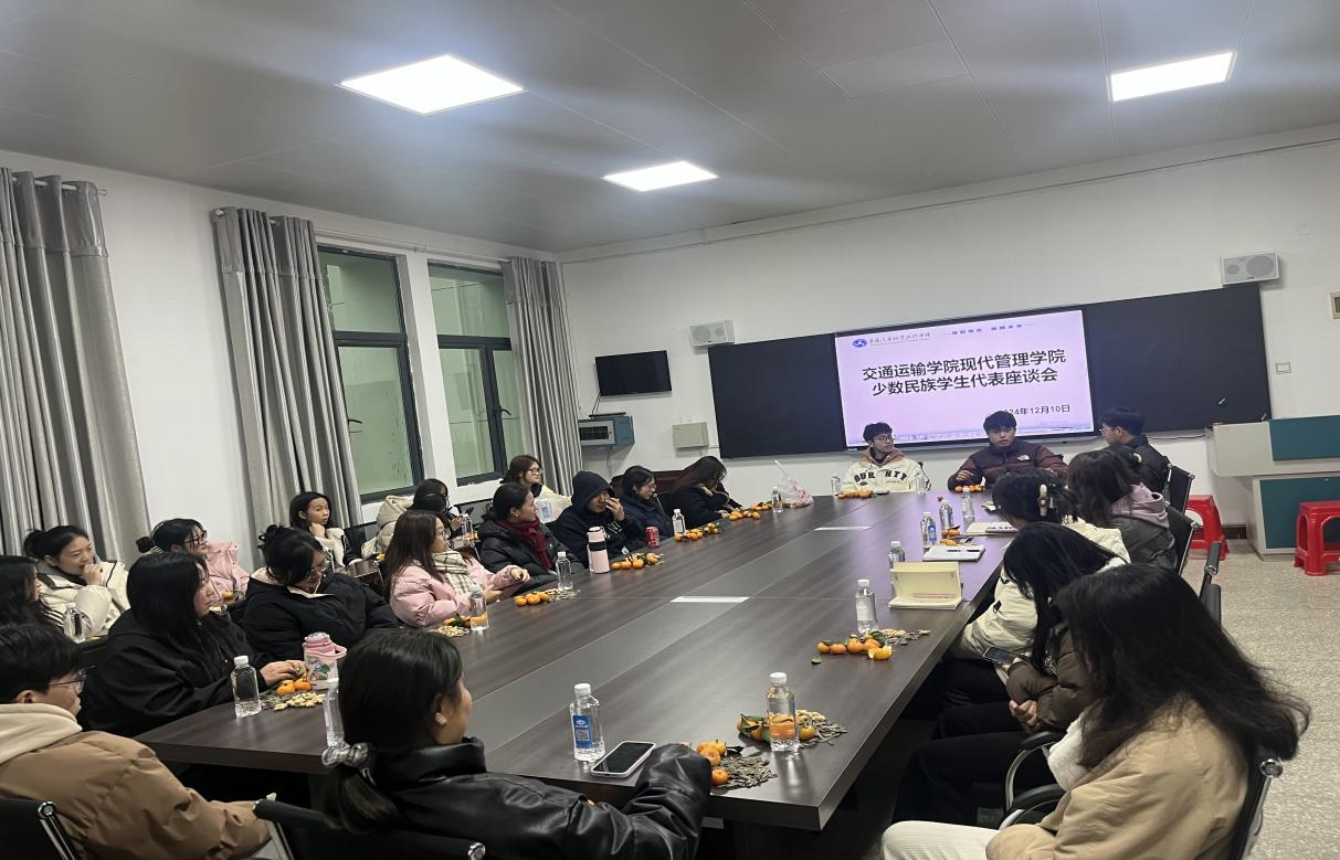 12月10日下午,交通运输学院现代管理学院召开了少数民族学生代表座谈会。学院党总支书记覃小航、副院长李慧、团总支书记颜聘婷以及来自壮族、回族、瑶族、彝族、布衣族等14个民族的30余位少数民族学生代表参加座谈会,座谈会由学管办主任陶玮主持。