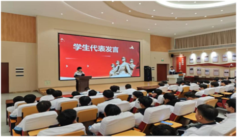 观看结束后,学生代表上台发言。学生代表情真意切地表达了对遇难同胞的深切哀悼,并呼吁全体团员以史为鉴,珍惜当下和平环境,努力学习专业知识,提升自我综合素质,将个人成长与国家命运紧密相连,用青春力量捍卫祖国尊严,传承和弘扬爱国主义精神,为实现中华民族伟大复兴而拼搏奋斗。