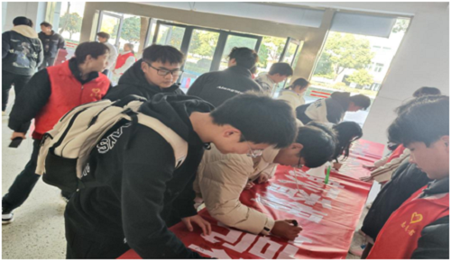 最后进行的横幅签名打卡活动将活动氛围推向高潮。一条长长的横幅上,同学们郑重地用记号笔签下自己的名字,每一笔都是对无烟无毒生活的坚定承诺。签到完成即打卡成功,领取奖品的同时,也在心中种下了健康生活的种子。