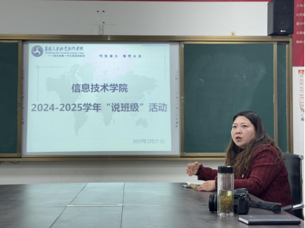 为进一步加强班主任队伍建设,提升班级管理水平,营造良好的育人氛围,2月27日,信息技术学院成功举办班主任“说班级”活动。学院全体班主任齐聚一堂,围绕班级建设、学生管理、学风营造、带班经验等方面展开深入交流,分享经验,共话成长。