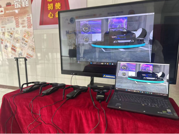 “MR交互体验中心”(虚拟展厅交互区)成为全场焦点。基于课程成果,学生打造的MR茶文化馆与汽车展厅,通过手势、语音操控实现虚拟场景与现实空间的无缝叠加。参观者可“亲手”泡茶、拆解汽车部件,体验虚实融合的交互魅力,展现了虚拟现实技术在文化传播与工业教学中的创新应用。