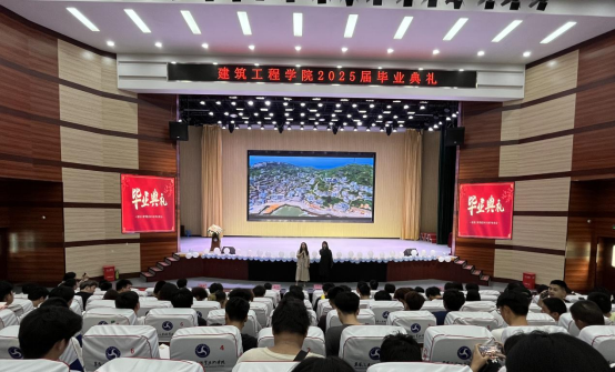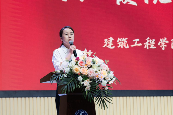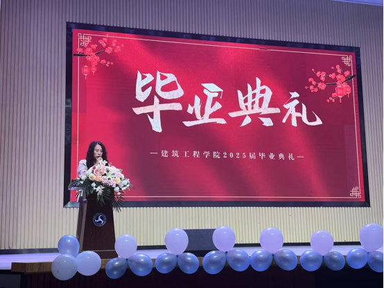 院长致辞环节,何院长首先回顾了同学们在校期间参与的专业实践、学科竞赛等成长历程,对大家顺利完成学业表示祝贺。她指出,建筑行业承载着城市建设与民生福祉的重任,同学们作为未来的行业建设者,更应将“止于至善” 融入职业追求。无论是设计图纸时的分毫必究,还是工程建设中的质量把控,都要秉持精益求精的匠心;在团队协作与社会服务中,也要坚守善良正直的本心,以专业能力与人文情怀打造经得起时间检验的优质工程。最后,她寄语毕业生牢记母校培育之恩,带着“止于至善”的信念奔赴未来,在各自岗位上创造价值,书写精彩人生篇章。
