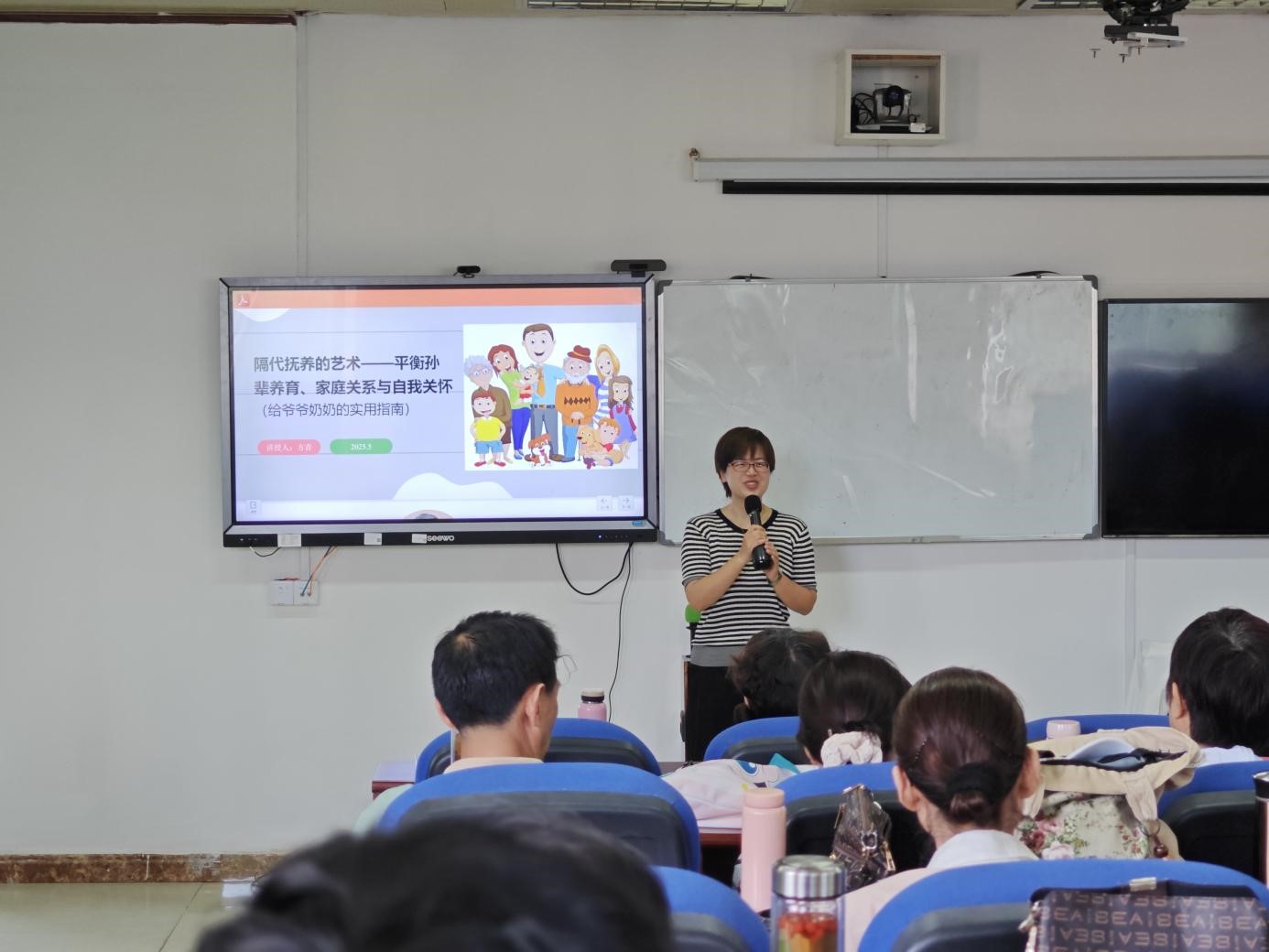 为响应教育部等十七部门《全面加强和改进新时代学生心理健康工作专项行动计划(2023—2025年)》里“优化社会心理服务,加强家庭教育指导服务”的理念,襄阳汽车职业技术学院心理中心专职教师方青与贾玥蕾于2025年5月30日带领“襄汽暖阳心理志愿服务队”十余名同学走进襄阳市老年大学,开展了一场主题为“隔代抚养的艺术——平衡孙辈养育、家庭关系与自我关怀”的心理健康公益讲座活动。此次活动不仅展示了我校在心理健康教育方面的创新举措,也进一步推动了家校社合作的新风尚。