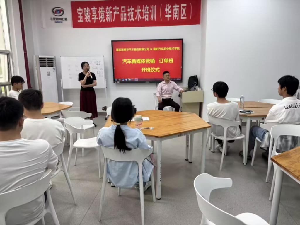 6月3日下午,为顺应汽车行业数字化转型趋势,深化产教融合、协同育人,襄阳圣泰华汽车服务有限公司与襄阳汽车职业技术学院联合打造的“汽车新媒体营销订单班”在汽车工程新能源汽车学院正式开班。