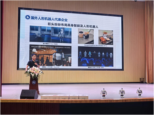 活动中,王泽晨副总监凭借丰富的行业经验,深入浅出地向师生们介绍了人形机器人当下的发展状况。他详细讲解了人形机器人技术所涵盖的多个核心要点,包括运动控制、人工智能交互、传感器应用等关键领域。同时,还分享了国内人形机器人比赛的现状,从赛事规则、参赛项目到技术亮点,让同学们对行业竞技有了更直观的认识。