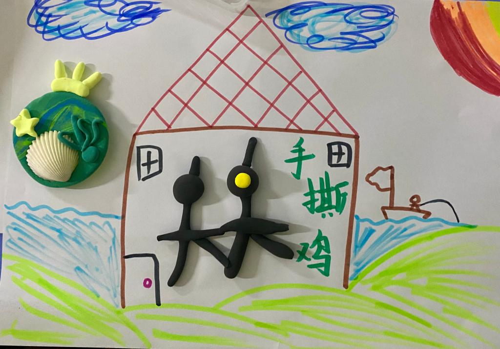 进入第二环节,贾老师引导同学们通过粘土与绘画在纸上构建“压力能量容器”。这一过程隐喻“压力转化”:通过艺术重构,原本混沌的情绪被赋予可视化形态,成员们尝试将消极能量导入自我设计的“心理容器”,实现认知重评。有参与者分享:“当我把粘土巨石碾碎画成蒲公英时,突然发现压力也可以轻盈。”